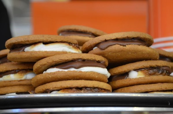 melted milk chocolate and marshmallow sandwiched between two large rounds of McVitie's biscuits